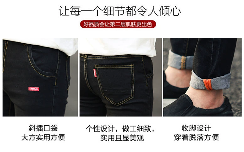 Mùa thu đen 9 điểm quần jeans nam Phiên bản Hàn Quốc của quần lọt khe quần thủy triều nam thường co giãn 9 điểm quần nam