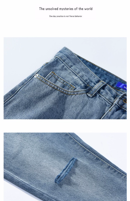 Mùa xuân và mùa hè mới giặt cắt quần jean mỏng Slim Hàn Quốc lỗ chín quần quần nam chân
