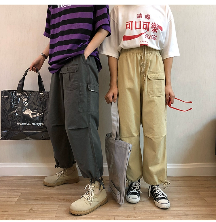 LES đẹp trai T Lin cong mùa hè Ami retro quần yếm rộng rãi giặt quần chân thẳng nam và nữ