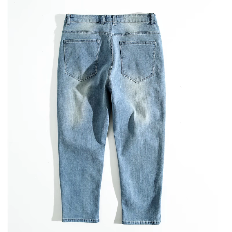 Quần co giãn quần Harlan chân quần jeans sáng màu quần nam XL giặt lớn mùa hè - Quần jean